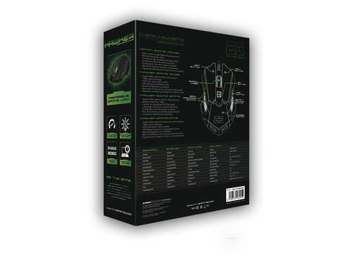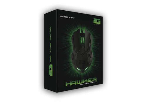 Il mouse Hawker atterra per diventare il complemento perfetto per tutti i giocatori. Ha un\'alta precisione sensoriale ottica Avago 3050 con 6 livelli di IPR e cambio on-the-fly (500-1000-1500-2000-3000-4000). Basta premere un pulsante è possibile modificare rapidamente i livelli di IPR, mantenendo tutta la concentrazione e agendo rapidamente e con precisione. Inoltre, ha illuminazione a LED in 6 colori diversi in modo da poter assegnare un colore a ogni livello di IPR o profilo, in modo da sapere in ogni momento come sei.