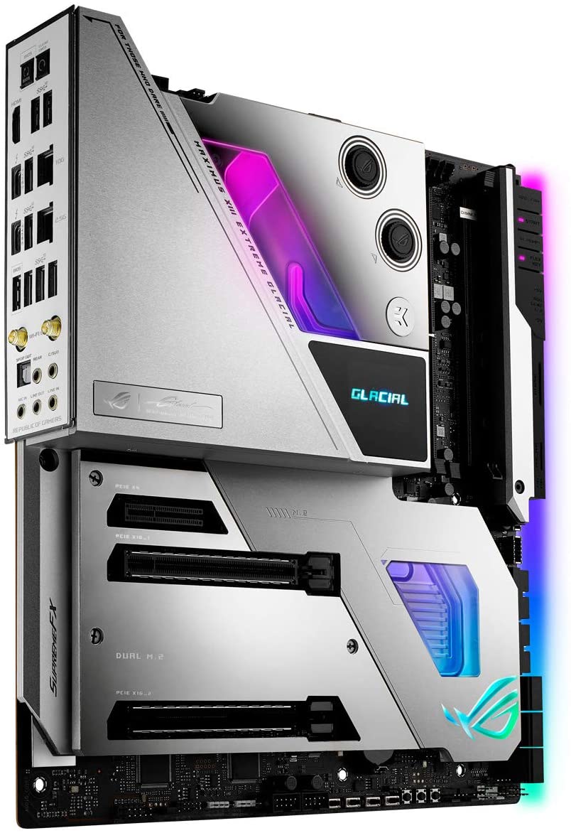 ROG Maximus XIII Extreme Glacial è completamente armato per coloro che vogliono guidare gli ultimi processori Intel Core 11-generazione fino alla fine delle prestazioni. Ha l\'ultimo hardware e software che lavorano all\'unisono per ottimizzare la vostra esperienza di overclocking, così come i miglioramenti dell\'intelligenza artificiale e i controlli di raffreddamento completi per fornire il controllo completo sulla vostra costruzione.