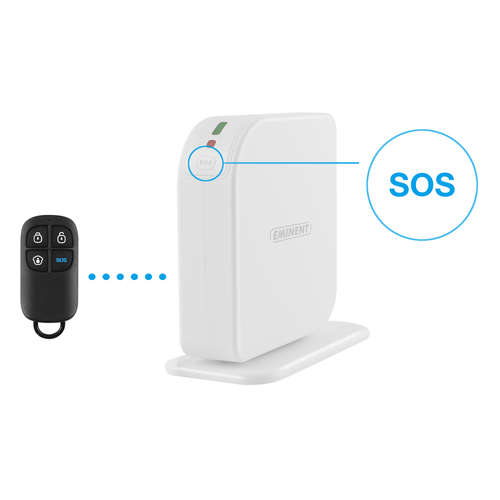Chiunque può utilizzare il sistema di allarme GSM EM8605 di base. Sia la stazione di base che il telecomando hanno un pulsante di panico (SOS), che invia messaggi di testo e attiva la sirena una volta attivata. Utilizzare il telecomando per accendere e spegnere l\'allarme. L\'app Eminent 8605 consente di controllare il sistema di allarme da qualsiasi parte del mondo.