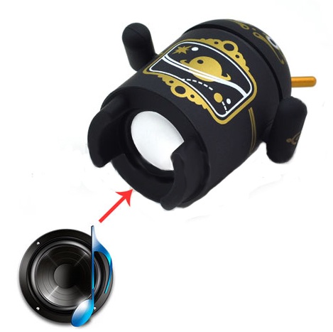 Altoparlante Mini con la forma della mascotte amichevole di Android "Andy", in questo caso nero con tuta spaziale. Ha la radio, lettore di schede microSD e USB. Inoltre anche in grado di connettersi in modalità wireless a qualsiasi dispositivo con bluetooth. Girando la testa da sinistra a destra può alzare e abbassare il volume, saltare le tracce o sintonizzare diverse stazioni radio. Premendo la testa ci fermiamo canzoni, selezionare la fonte da cui vogliamo ottenere il suono e anche rispondere alle chiamate come questo "piccolo" fa anche in vivavoce.