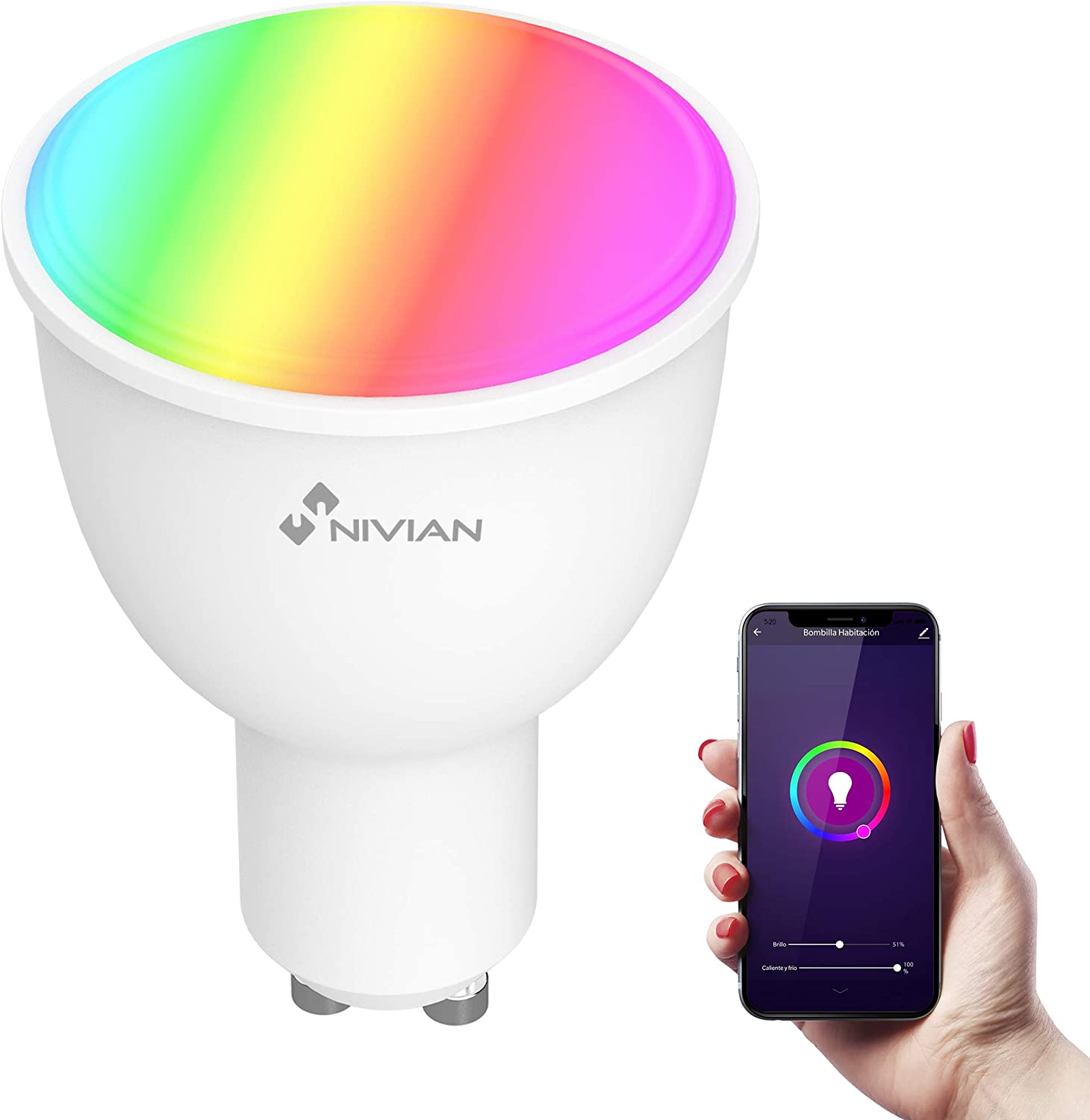 È possibile mettere la luce che si desidera controllare dal cellulare o dagli assistenti vocali, completamente regolabile in tutti i toni RGB fino a 16 milioni di colori