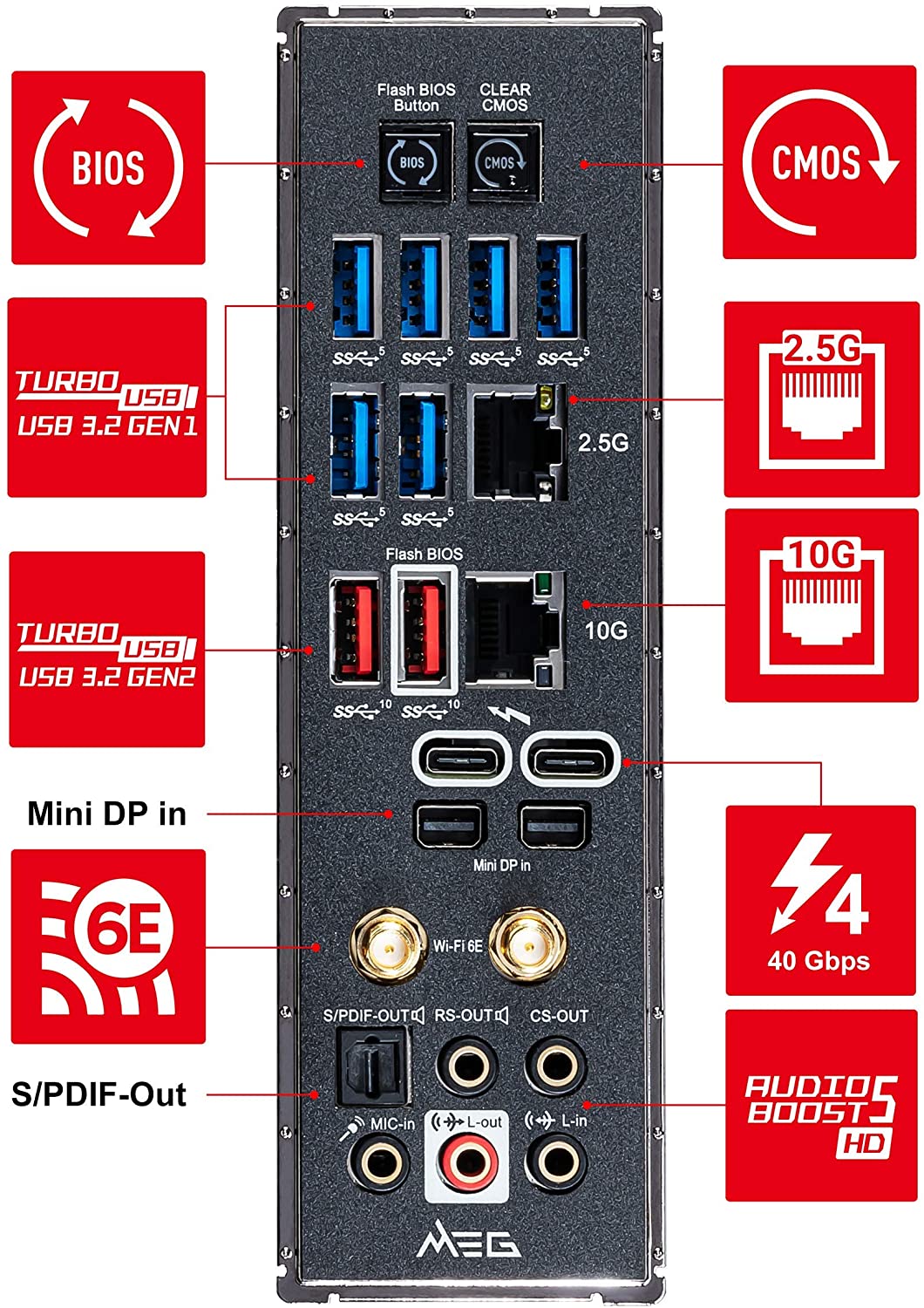 MEG Z590 GODLIKE ha un esclusivo ñ o scudo completo che copre il 90% della superficie della scheda madre, compresi i fastidiosi cavi. Grazie al ñ o magn ético puoi mostrare il tuo PC. Inoltre, aiuta a gestire i cavi e ottimizza il flusso d'aria.