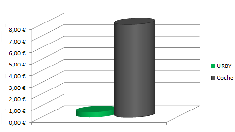 Confronto, un\'auto in un ambiente urbano può consumare una media di 8 €/100km almeno così Urby è circa 20 volte più economico per spostarsi in città che in auto.
