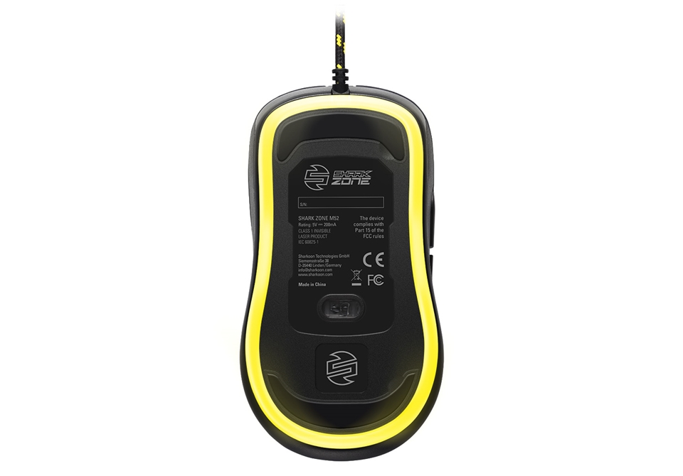 Tutti i puristi di design, che non saranno visti in alcun impegno per le caratteristiche, ameranno il mouse per Sharkoon SHARK ZONE M52 gioco. La sua elegante superficie nera è classica e senza tempo, senza angoli e bordi, ed è fatto per qualsiasi luogo di lavoro o gioco. La sua forma asimmetrica, con pulsanti laterali piatti di facile accesso, è perfettamente ergonomica ed è sempre molto confortevole come lavoriamo o giochiamo. Il cavo tessile intrecciato, in un design tipicamente nero-giallo SHARK ZONE, così come il logo illuminato di colore bianco e l\'illuminazione RGB in basso, evidenziano tutto il potenziale necessario del dispositivo. Grazie alla comoda superficie in gomma la M52 con il suo peso in piuma è sempre molto confortevole nella presa, anche dopo molte ore di utilizzo.
