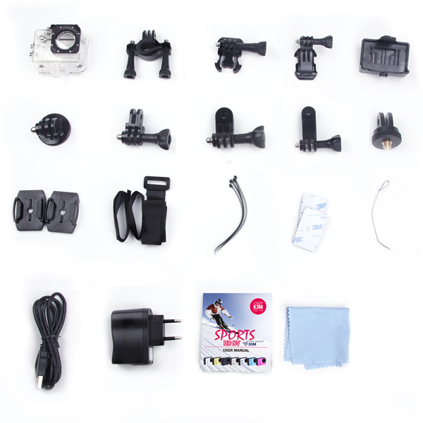 1 x Batteria 900mAh Li-ion; 1 x Manuale multilingue 2 x adesivi SJCAM