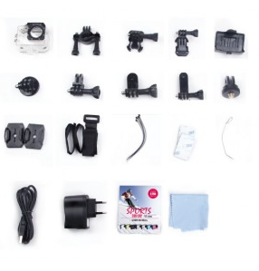 1 x Batteria 900mAh Li-ion; 1 x Manuale multilingue 2 x adesivi SJCAM